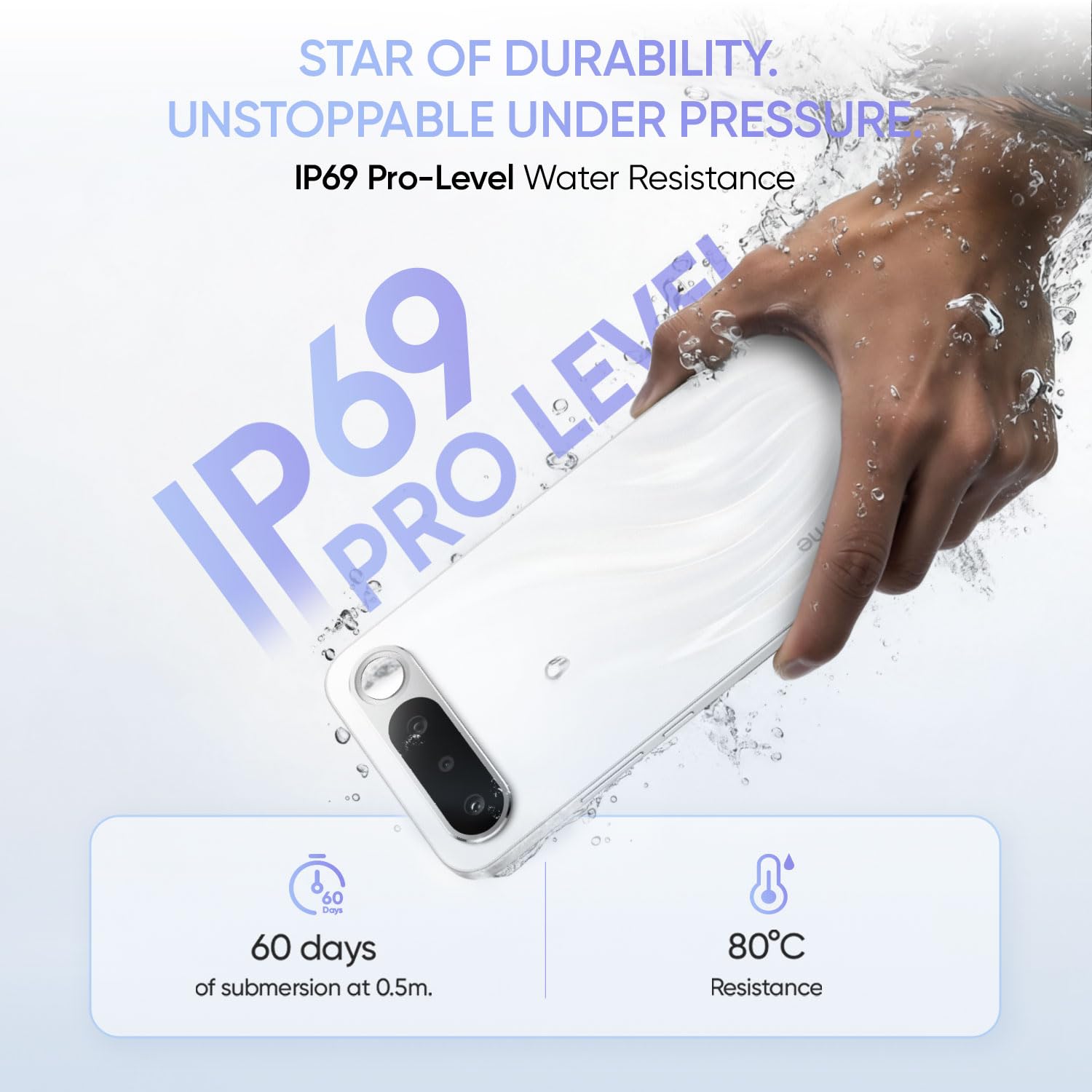 The realme 16 5G is a mid-range smartphone featuring an 8.1mm profile and a 7000mAh battery. It is equipped with a 6.57-inch 120Hz AMOLED display, a 50MP main camera, a 50MP front-facing camera, and IP69K water and dust resistance, offering steady daily performance and durability.