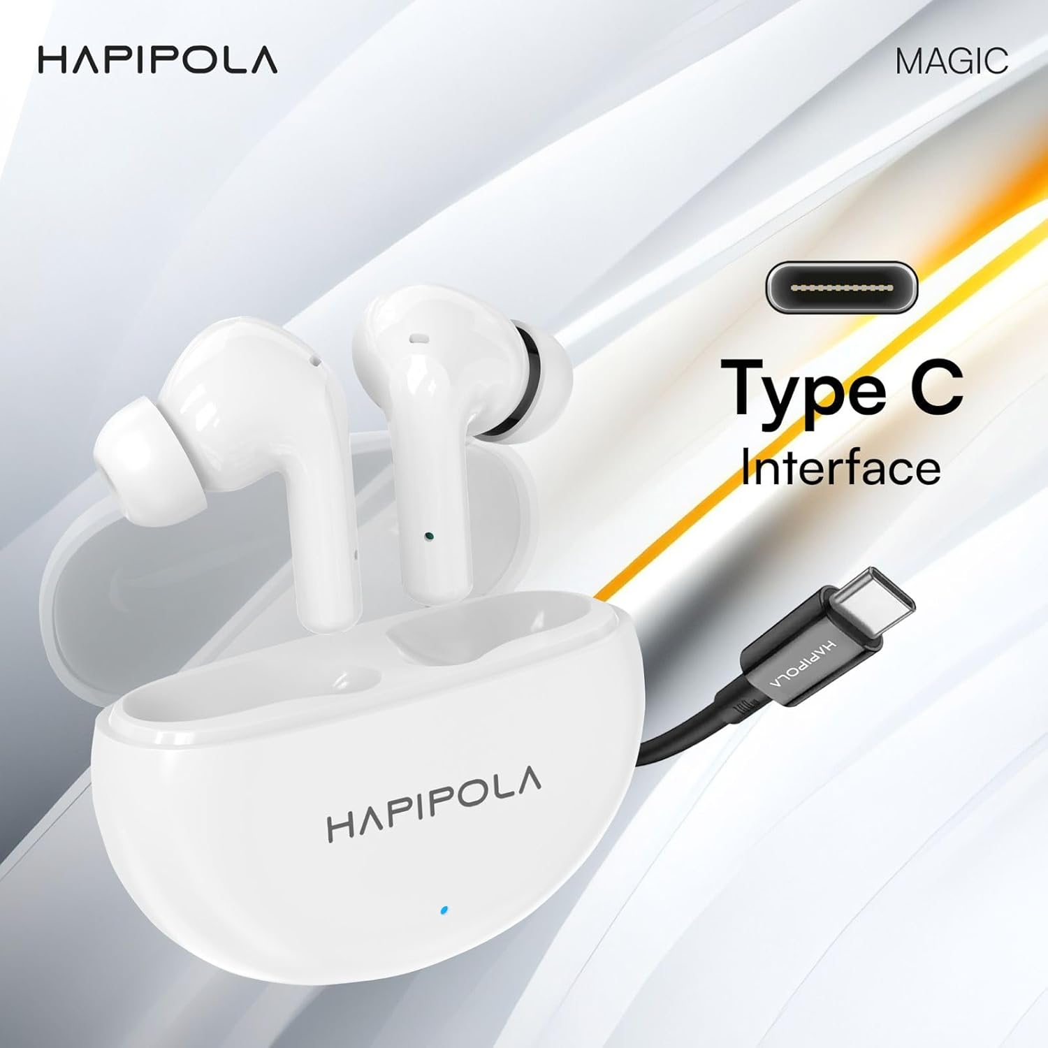 Hapipola Magic True Wireless Buds bring a perfect blend of style, comfort, and performance. Designed for everyday music and calling, these earbuds deliver balanced sound, clear voice quality, stable Bluetooth connectivity, and a compact charging case that fits easily in your pocket.