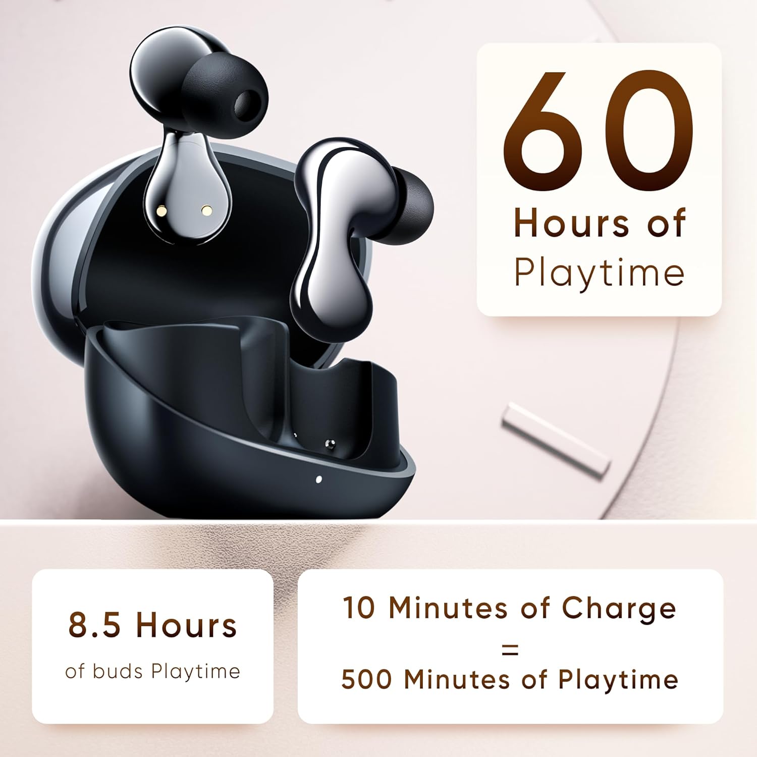 - Long-lasting battery with compact charging case.
