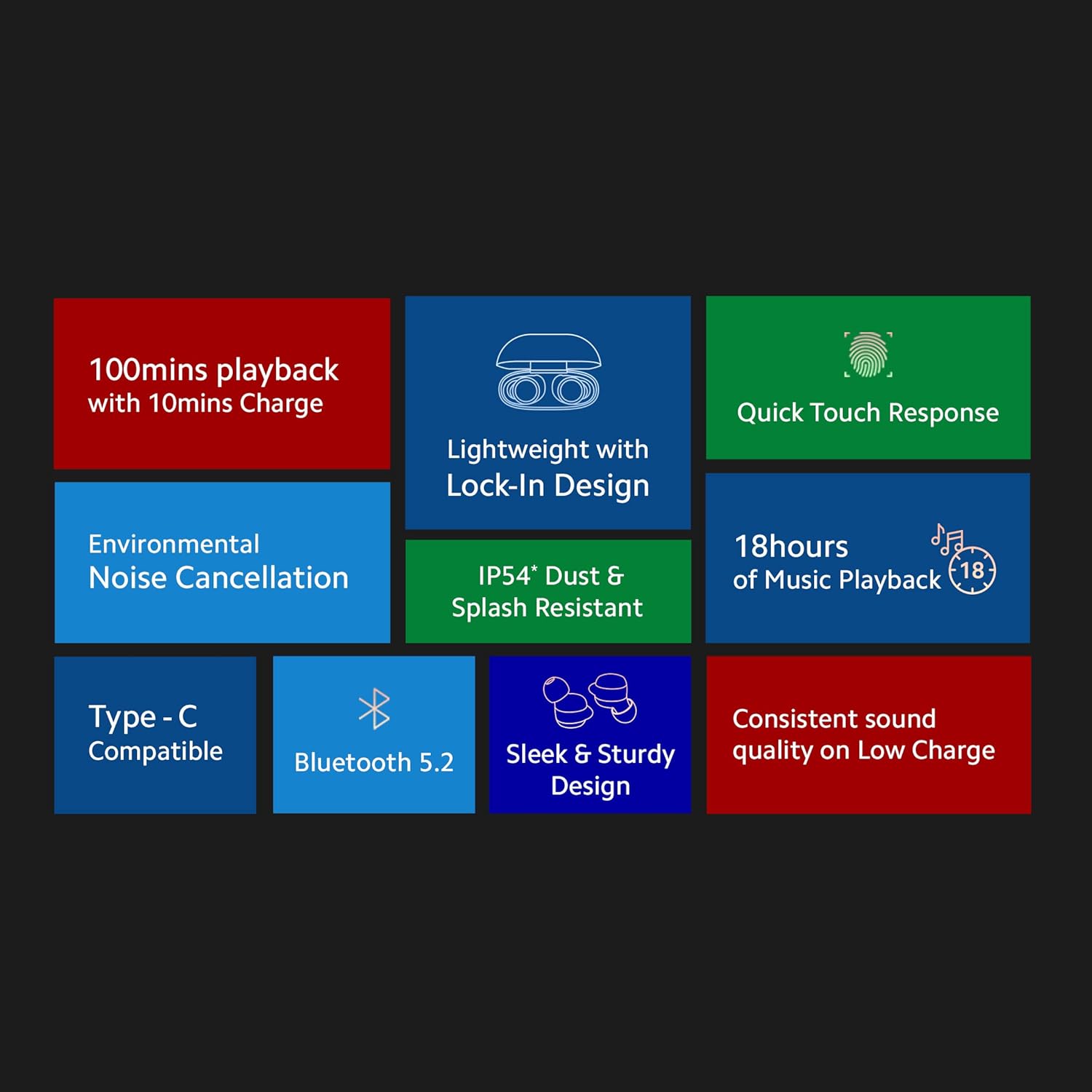 Actual battery backup and call quality may vary depending on usage, volume levels, and connected devices.