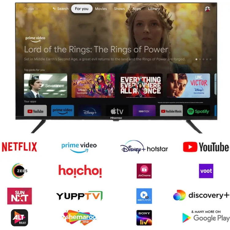• Google TV smart platform — supports OTT apps, Chromecast, voice assistant, streaming and casting.