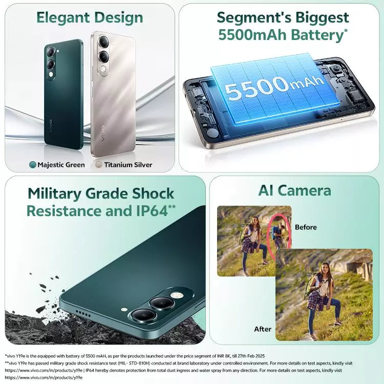 The Vivo Y19e 5G is a budget-friendly smartphone built for users who want future-ready 5G connectivity, long battery life, and smooth everyday performance. With a large display, efficient processor, and clean design, it’s ideal for students and daily users.