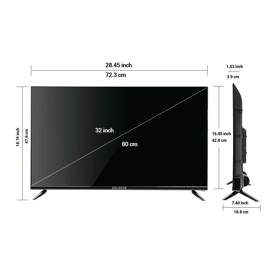The Cellecor Smart LED TV E-32 X brings immersive entertainment to your home with a crisp 32-inch HD display and smart features. Designed for smooth streaming, everyday viewing, and smart connectivity, this TV is ideal for bedrooms, living rooms, and compact spaces.