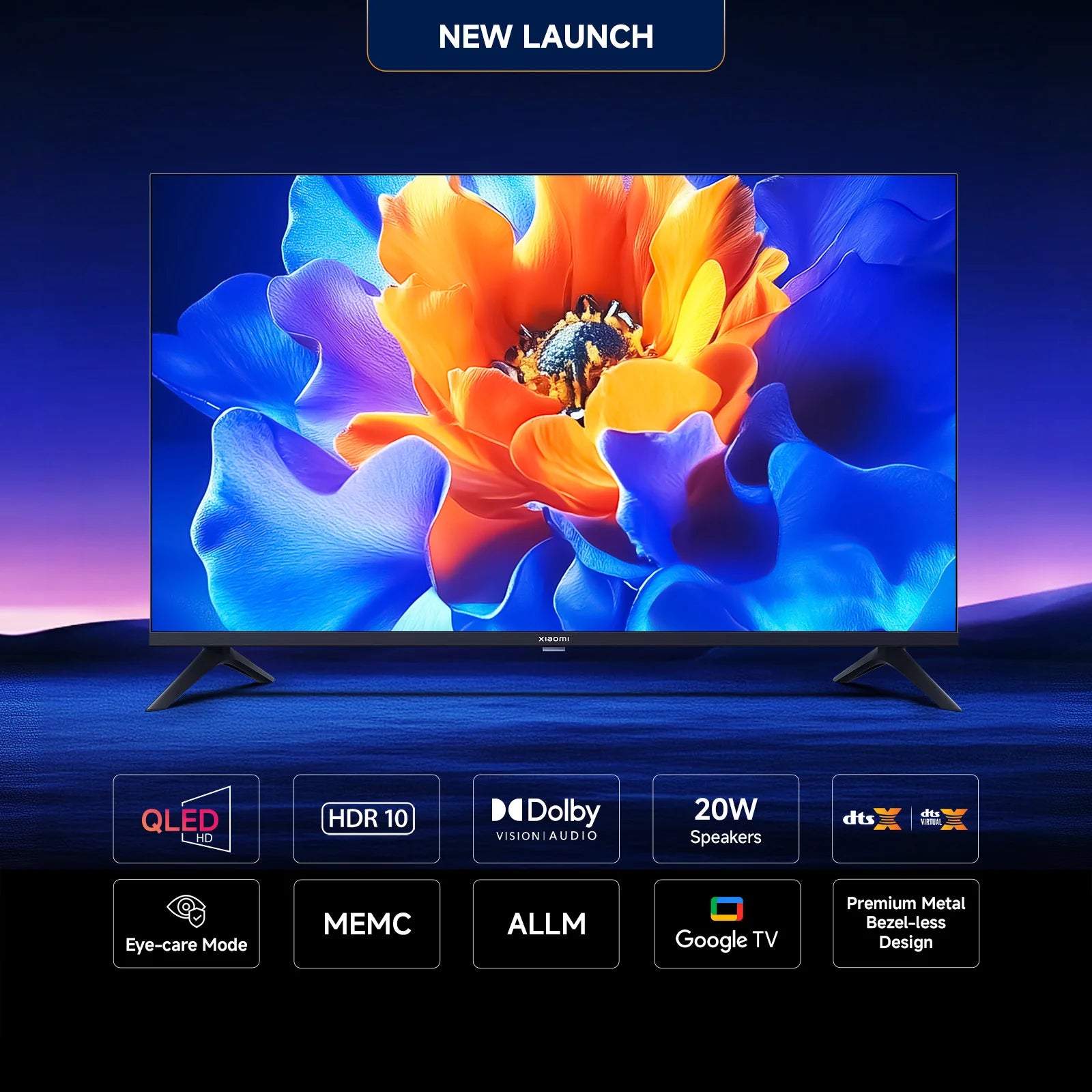32" QLED HD Ready (1366×768) Google TV OS Bezel-less Slim Design 20W Dolby + DTS Audio Dual‑Band WiFi & Bluetooth 2× HDMI • 2× USB HDR10 Support Chromecast / Miracast