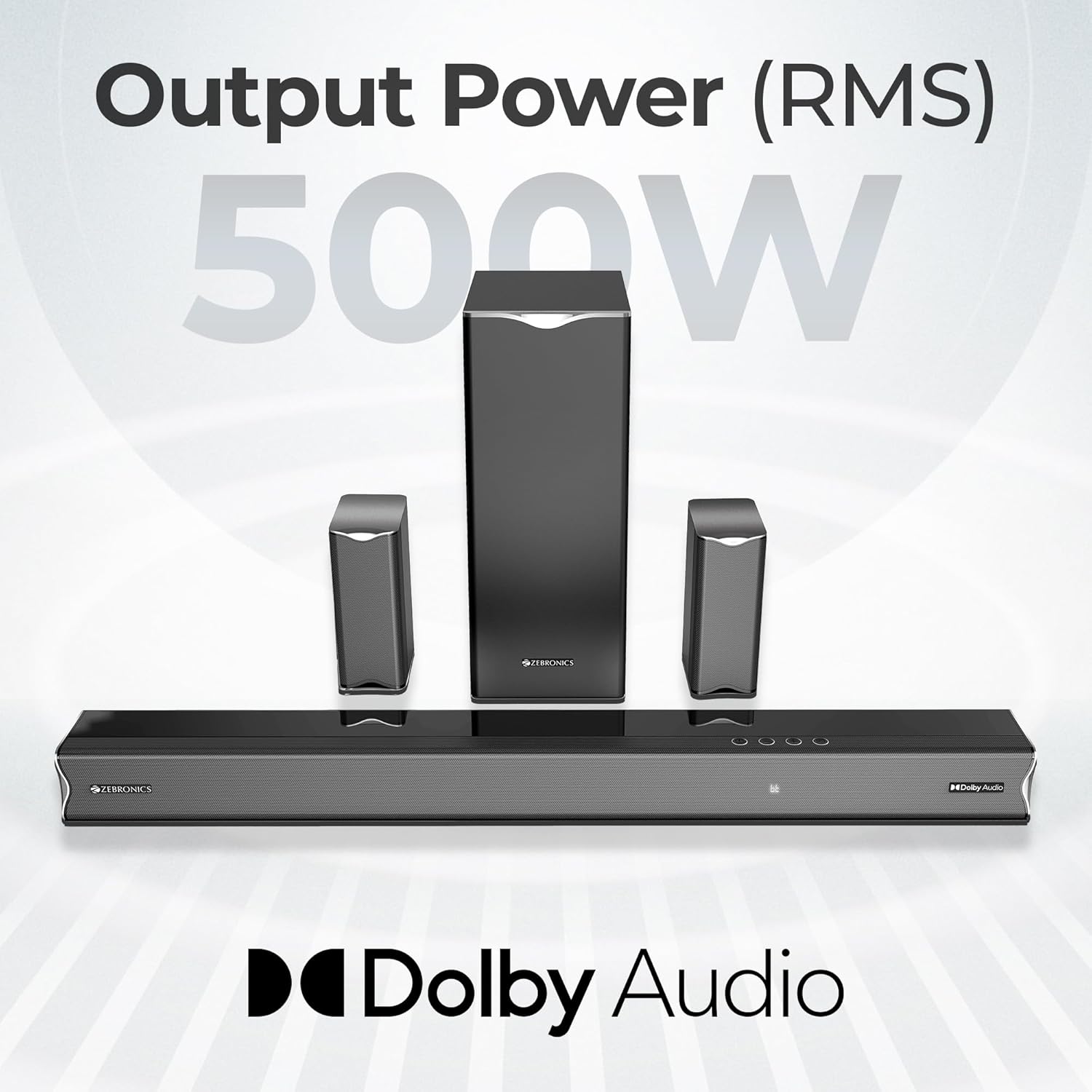 Zebronics Juke Bar 9520WS Pro Dolby 5.1 (500W) — Wireless Surround. Theatre Power.