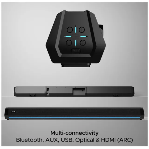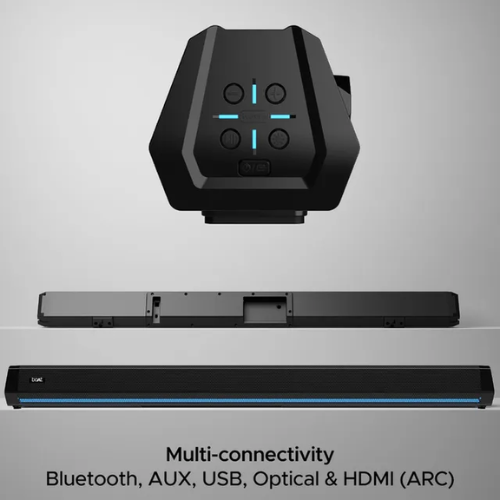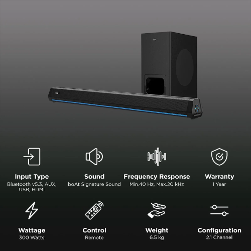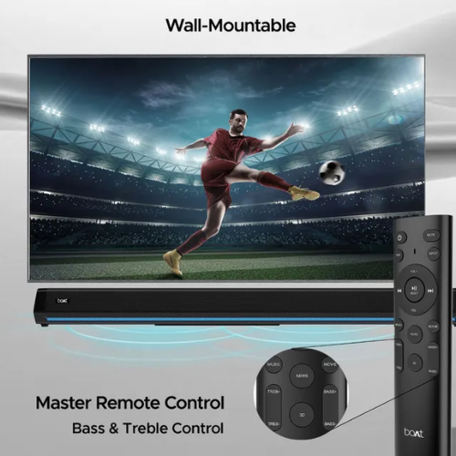 Turn your living room into a cinematic arena with the boAt Aavante Bar Maven 300W. This powerful 2.1-channel soundbar delivers room-filling audio, thanks to its dedicated subwoofer and boAt Signature Sound tuning. With multiple connectivity options - Bluetooth v5.3, HDMI (ARC), USB, Optical & AUX - every movie, game or track becomes immersive. Easily switch between EQ modes (Music, Movies, News, 3D) and control from the remote. Sleek in design yet heavy on bass, it’s built to enhance your entertainment.