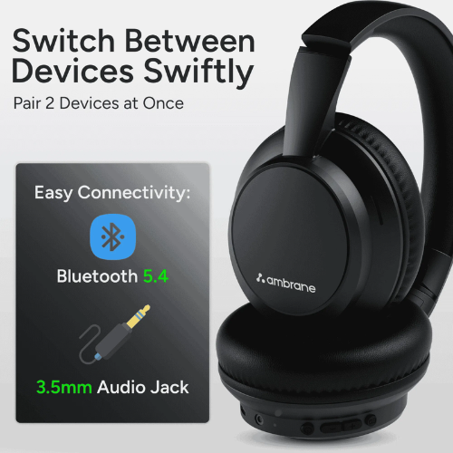 Immerse yourself in rich, high-quality audio with the Ambrane WH-82 Wireless Headphones. Equipped with powerful 40 mm drivers and tuned for deep bass, these over-ear headphones deliver great sound whether you’re working, commuting or relaxing. Enjoy up to 35 hours of playback on a single charge, and stay connected with built-in hands-free mic for calls and voice assistant support. The foldable, padded design ensures comfort all day long. Perfect for music lovers on a budget.