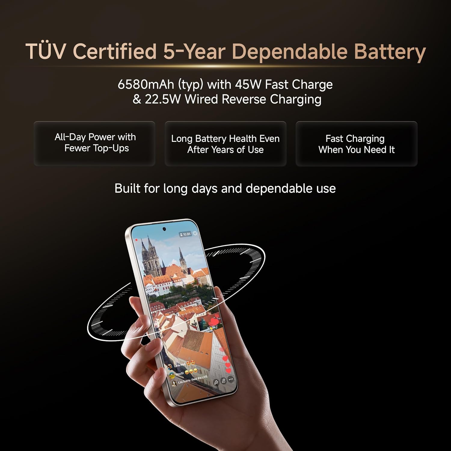 - Silicon-Carbon Battery: High-density 6580mAh battery designed to retain 80% capacity even after 6 years of use.