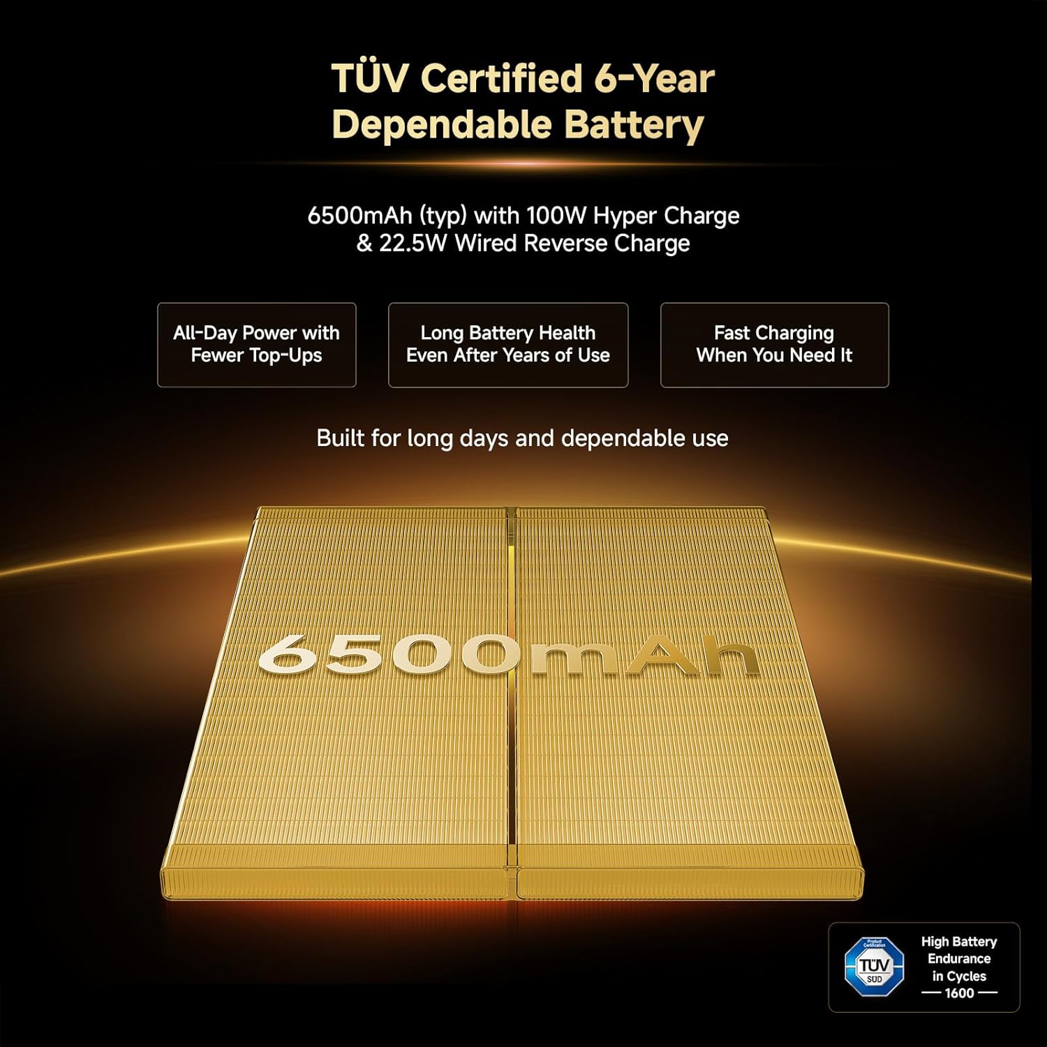 • 100W HyperCharge: Charge your device to 100% in record time, supported by a 5600mAh high-cycle silicon-carbon battery.